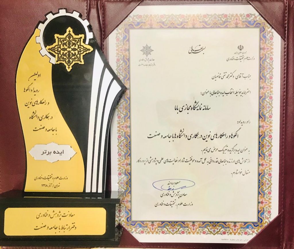 کسب مقام نخست نمایشگاه مجازی باما در رویداد الگوها و راهکارهای نوین در همکاری دانشگاه با جامعه و صنعت